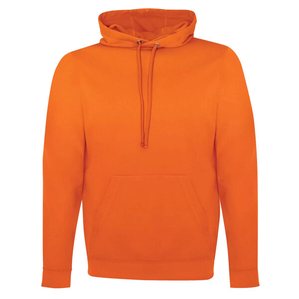 9.3-oz, 100% anti-static performance polyester fleece. 3-panel unlined hood with drawstring. Moisture wicking. Breathable. Flat lock seams. Classic fit. Due to the nature of polyester, special care must be taken throughout the decoration process. Please refer to product size spec PDF file for more details.